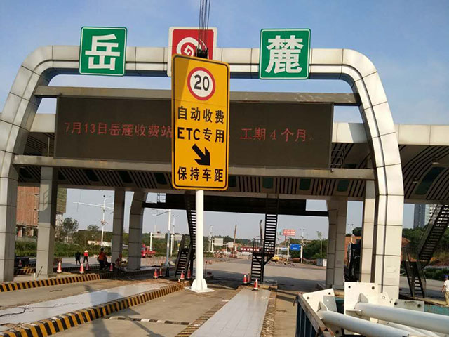 長韶婁岳麓收費(fèi)站隨車吊做最后信號(hào)燈安裝